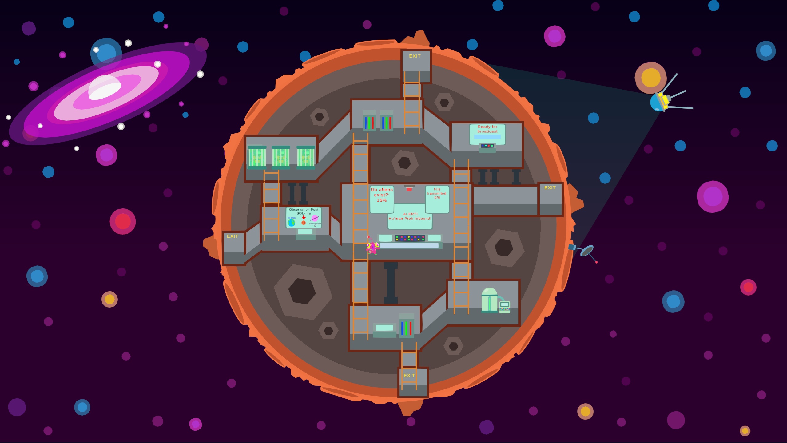 De très jolis assets, une musique d'ambiance en accord avec le jeu, un gameplay plutôt amusant ! Petit bug a fix au niveau du stellite + un tuto ! (GLUGLUGLUGLUGLU)
